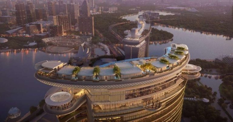 The new project will feature a 570-suite hotel tower, exclusive rooftop dining, private wellness terraces, luxury retail, and a 15,000-seat entertainment arena. The tower will be designed by Moshe Safdie, the architect behind the original Marina Bay Sands.